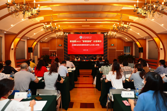 8月14日,由教育部主辦,北京外國語大學承辦的教育部2022年“職教國培”示范項目——全國職業院校教師發展中心負責人研修班在北京外國語大學開班。北京外國語大學黨委常委、副校長丁浩,教育部教師工作司教師發展處處長趙靜,外研集團黨委書記、董事長、外研社社長王芳,北京外國語大學國際教育學院副院長苑大勇,北京外國語大學外研培訓中心總監、外研社職教分社社長李淑靜等出席開班儀式。