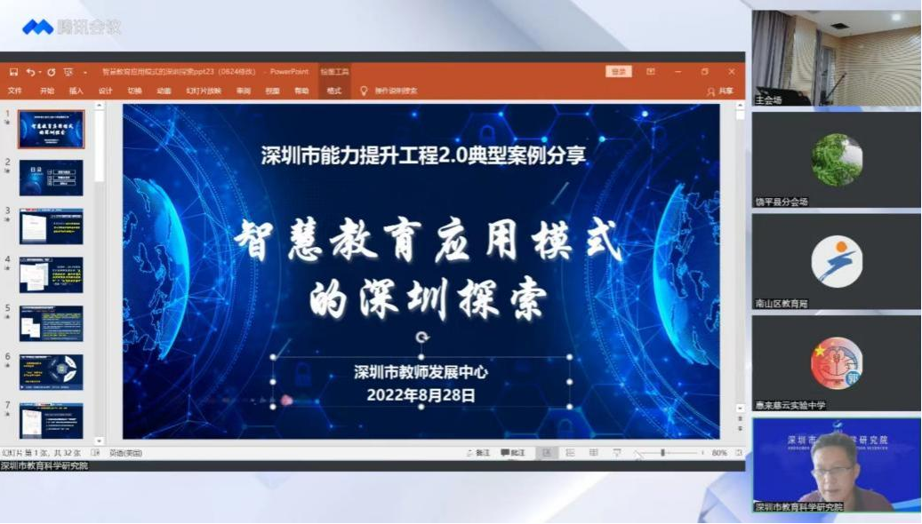 據(jù)介紹,提升工程2.0橫跨十個(gè)區(qū)域,2309所學(xué)校參訓(xùn),選擇“智慧教育應(yīng)用模式”的有2283所學(xué)校,占98.87%,參訓(xùn)人數(shù)合計(jì)131523人,網(wǎng)絡(luò)研修完成率超過(guò)99%。“整校推進(jìn)”樣本輻射廣東全省,推送省級(jí)試點(diǎn)區(qū)3個(gè)(南山區(qū)、福田區(qū)和龍華區(qū))、省級(jí)試點(diǎn)校6所,其中南山區(qū)在廣東省提升工程試點(diǎn)區(qū)考核中獲總分第一名,深圳市育新學(xué)校和南方科技大學(xué)教育集團(tuán)(南山)第二實(shí)驗(yàn)學(xué)校獲得廣東省提升工程2.0省級(jí)試點(diǎn)校“整校推進(jìn)”稱號(hào)。“整校推進(jìn)”模式被廣泛推介與借鑒,促進(jìn)了深圳市智慧教育的深化發(fā)展,智慧教育能力點(diǎn)已有超過(guò)41萬(wàn)次的實(shí)踐應(yīng)用,在平臺(tái)已提交超過(guò)5000份優(yōu)質(zhì)學(xué)科典型課例,深圳全市組織開發(fā)中小學(xué)課程資源包7866個(gè),遴選100所實(shí)驗(yàn)學(xué)校,構(gòu)建了市區(qū)校三級(jí)實(shí)驗(yàn)體系開展實(shí)驗(yàn)探索。首次發(fā)布“名師在線”公開課182節(jié),吸引近40萬(wàn)人次教師線上觀摩。同時(shí),為推動(dòng)教師持續(xù)和深度應(yīng)用信息技術(shù),深圳市公開征集1455節(jié)“在線教學(xué)”優(yōu)秀課例,其中約一半轉(zhuǎn)化為中小學(xué)教師繼續(xù)教育的學(xué)習(xí)課例。