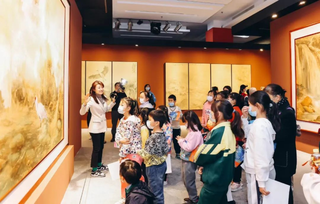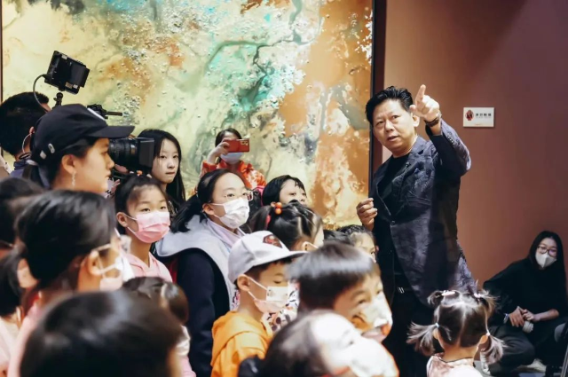活動(dòng)期間,孩子們走進(jìn)榮寶齋當(dāng)代藝術(shù)館(以下簡(jiǎn)稱“榮寶齋”),聽(tīng)藝術(shù)家曹俊分享作品。