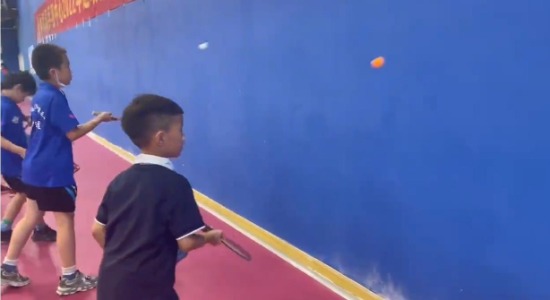 2)乒乓球對墻拋球:移動顛球技術達標:5分鐘完成。