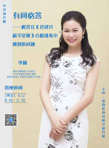 廣東省合唱協(xié)會常務理事、深圳市鹽田區(qū)外國語小學音樂教師李曦,為鹽田區(qū)中小學、幼兒園音樂教師作了一場主題為“有問必答——解答在《谷建芬·新學堂歌》合唱排練中遇到的問題”的精彩分享。本次培訓是鹽田區(qū)少年藝術(shù)院《谷建芬·新學堂歌》合唱培訓活動的第三場,在前兩場培訓的基礎(chǔ)上,有針對性地幫助老師們解決“谷建芬·新學堂歌”合唱訓練中的問題,致力于在新學堂歌合唱活動中提升學生藝術(shù)素養(yǎng),培育美好心靈,喚醒民族之情。