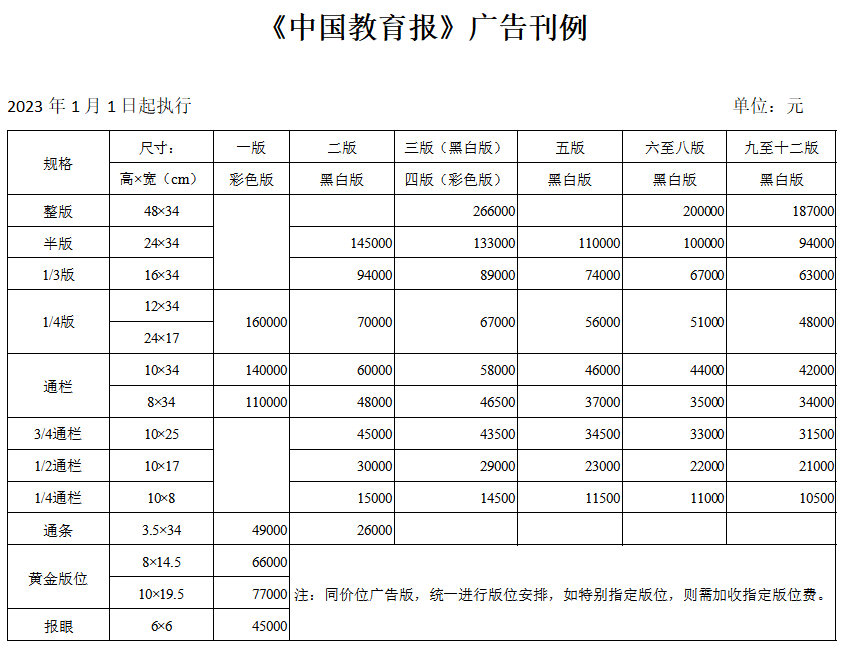 ◆ 除一、四版外,其他版面全國套彩加收30000元;全國套紅加收8000元;