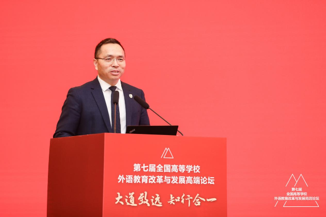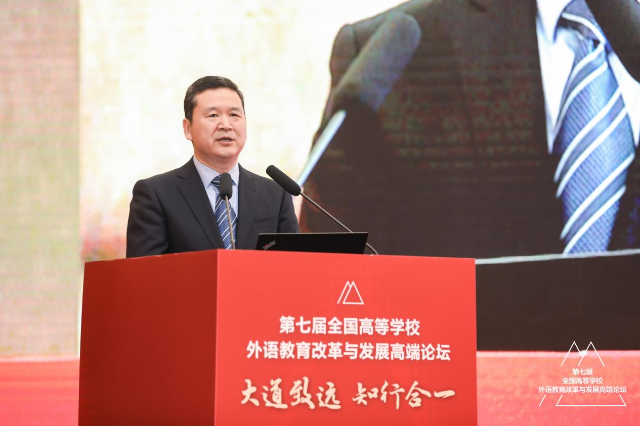 3月25-26日,第七屆全國高等學校外語教育改革與發展高端論壇在北京舉辦。論壇主題為“大道致遠,知行合一”。中宣部領導、教育部領導、教指委專家及2000余位高等外語教育界專家學者齊聚北京,16萬高等外語教育同仁云端參會,以黨的二十大精神為指引,共探外語教育現代化建設新路徑,共繪外語教育高質量發展新華章。