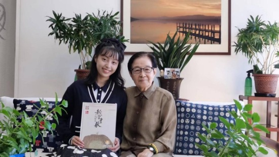 圖為中國殘疾人事業(yè)新聞宣傳促進會與中華兒童慈善救助基金會授予“圓夢愛心大使”侯怡帆與著名藝術家谷建芬