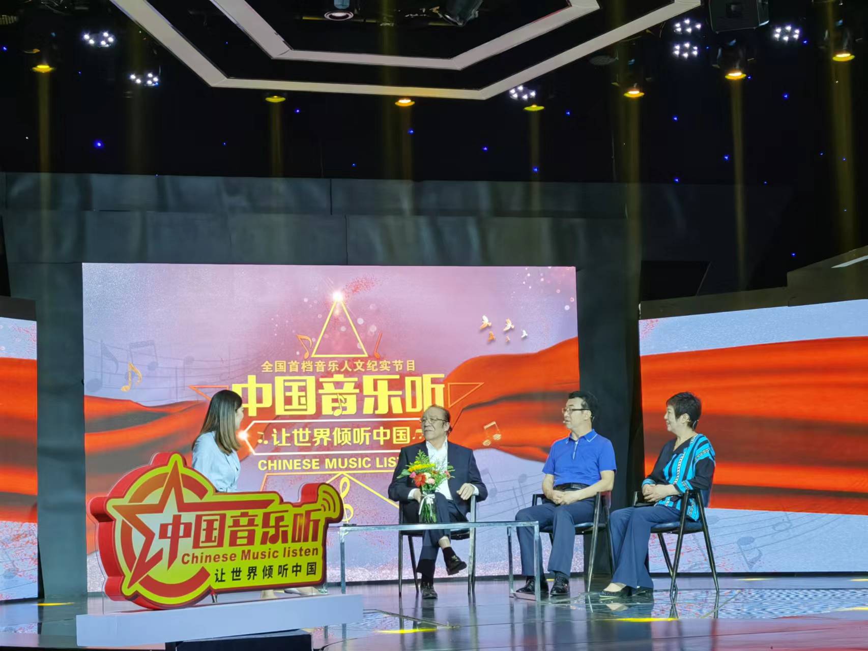 圖為中國美育教育網、人民日報海外網音樂頻道聯合出品中國首檔音樂人紀實節目《中國音樂聽》楊洪基錄制現場