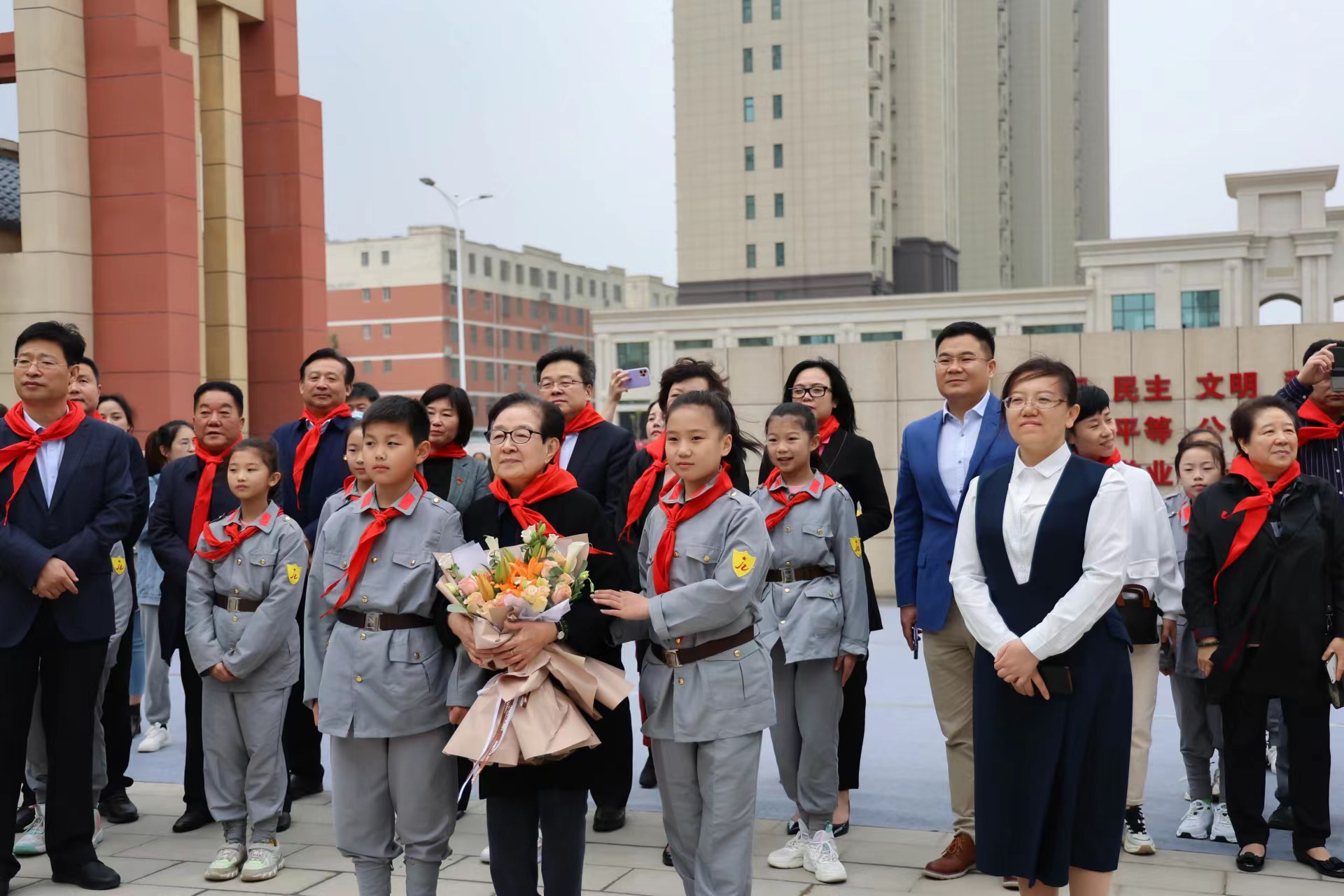 圖為美育中國校園萬里行走進運城,著名藝術家谷建芬與山西省運城市相關領導出席活動