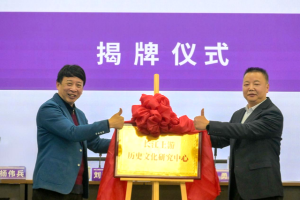 會上,重慶電子科技職業大學黨委常委、副校長劉洪光向研究中心第一批兼職專家頒發聘書,并與西南大學歷史地理研究所所長藍勇一起為長江上游歷史文化研究中心揭牌。