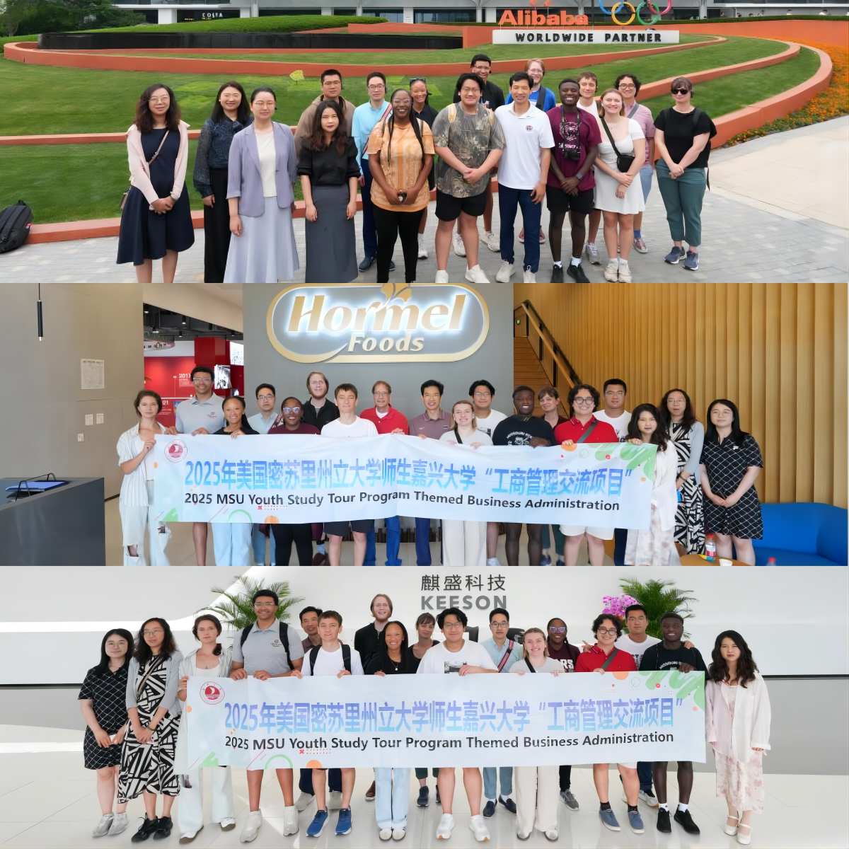 近日,美國密蘇里州立大學11名師生來到嘉興大學參加“工商管理項目”交流營。交流營活動以多元融合和深度體驗為特色,通過沉浸式的企業參訪、文化體驗和學術交流等環節,讓美國師生了解真正的中國,深度感知長三角核心區的經濟社會文化脈動,構建起理解中國式現代化的鮮活認知。