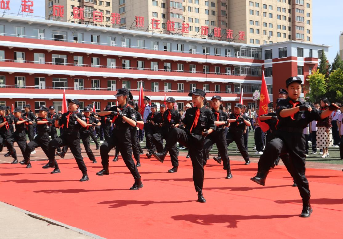 揭牌儀式上,回民區(qū)警察協(xié)會(huì)會(huì)長李國平向?qū)W生代表授予“少年警校”校旗。全體學(xué)員在學(xué)生代表帶領(lǐng)下莊嚴(yán)宣誓:“學(xué)習(xí)法律知識(shí),增強(qiáng)法治理念,爭做守法小公民!”稚嫩的聲音中透著堅(jiān)定,展現(xiàn)出新時(shí)代少年對(duì)法治精神的向往。