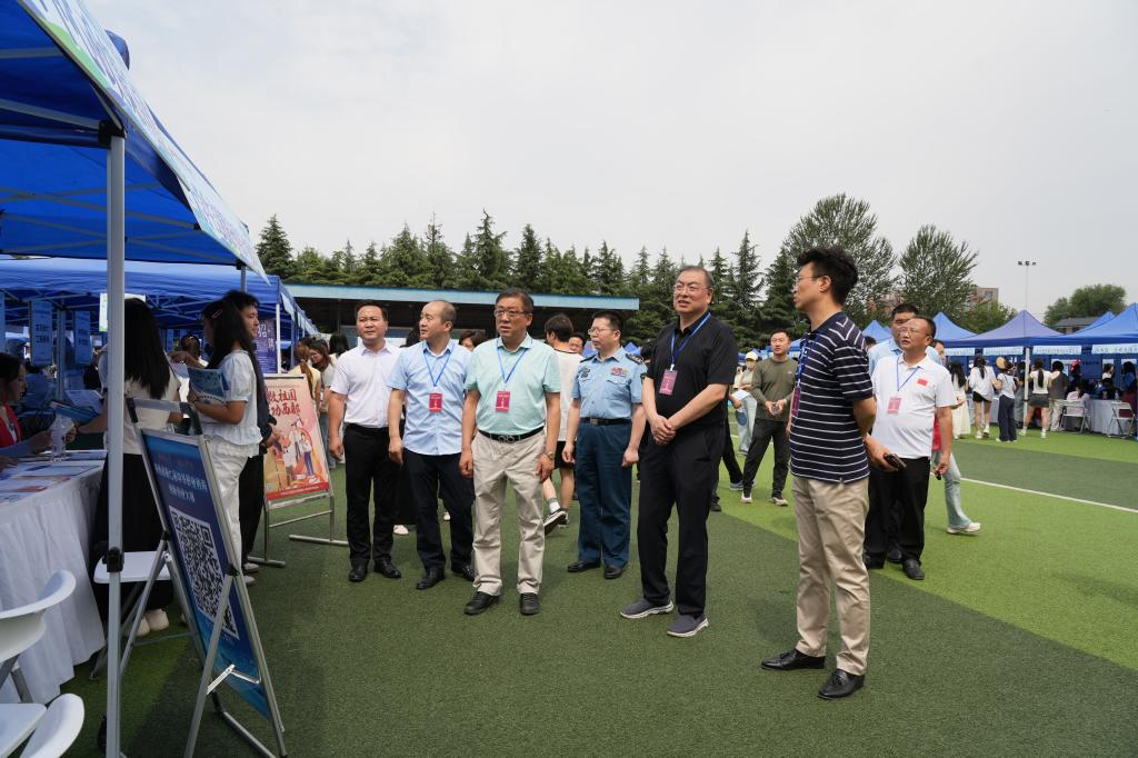 畢業生就業是陜西財經職業技術學院高度重視的核心工作。招聘會期間,學校黨委書記高玉峰、校長程書強,秦都區委常委、人民武裝部政治委員馮宏劃等深入現場指導檢查工作,并與參會學生詳細交談,了解其求職意愿、求職困難和求職導向;與用人單位溝通目前就業環境、用工需求及薪資待遇等情況,認真聽取其對學校人才培養、就業服務工作的意見和建議。