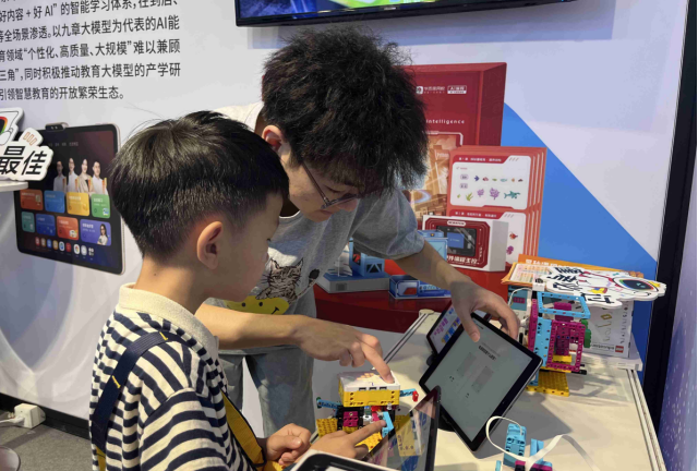 機器人無疑是本屆展會上“最忙”的員工。作為樂高教育的戰(zhàn)略合作伙伴,學而思將樂高教具與“5E+2教學法”融入課堂,通過“搭建+編程”全流程設計,培養(yǎng)學生動手動腦、獨立解決問題等多項能力。現(xiàn)場掃碼預約體驗課的家長絡繹不絕,有家長直言:“孩子為調試機器人反復驗證邏輯,這種解決問題的能力比分數(shù)更重要。”