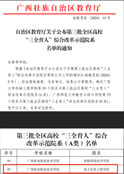 2024年學院獲得廣西高?!叭恕本C合改革示范院系(A類)