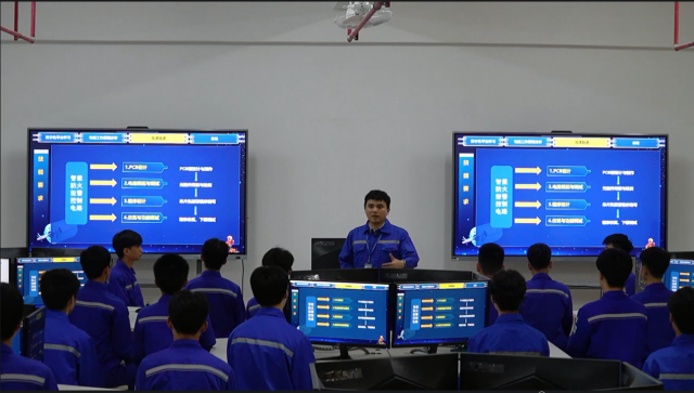 “教師不能只懂教學(xué),還要懂生產(chǎn);技師不能只懂操作,還要懂教學(xué)?!?/span>學(xué)校師資建設(shè)負(fù)責(zé)人介紹,學(xué)校建立了雙向流動(dòng)機(jī)制:每學(xué)期安排專業(yè)教師到廣西天山電子股份有限公司(以下簡稱“天山電子”)掛職60天以上,參與產(chǎn)線優(yōu)化、設(shè)備維護(hù)等實(shí)戰(zhàn),將產(chǎn)線瓶頸問題轉(zhuǎn)化為教學(xué)案例。黃富高就曾將企業(yè)“多批次訂單切換效率低”的難題,設(shè)計(jì)成了學(xué)生的綜合實(shí)訓(xùn)項(xiàng)目。