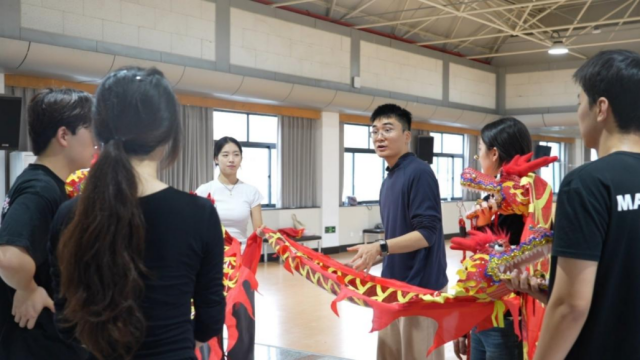 青年教師田若涵指導學生舞龍
