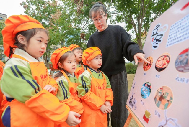 小朋友們在志愿者的講解下學習了解傳統節氣立冬的相關知識 陳海偉 攝