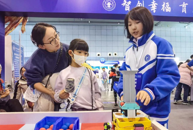 11月22日,以“AI海淀 Ai科技”為主題的2025年海淀區(qū)中小學(xué)生科技節(jié)暨科技教育成果展在中關(guān)村國(guó)家自主創(chuàng)新示范區(qū)展示中心拉開帷幕,活動(dòng)通過成果展覽、互動(dòng)體驗(yàn)、微論壇、科普演講等多元形式,全面呈現(xiàn)海淀區(qū)在“人工智能+教育”與大中小幼貫通育人方面的豐碩成果。中國(guó)教育報(bào)-中國(guó)教育新聞網(wǎng)記者 單藝偉 攝