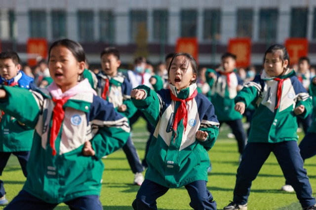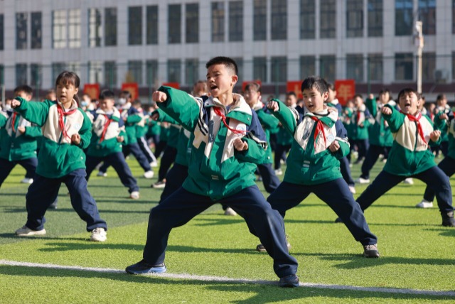 學生在大課間練習傳統武術。通訊員 胡攀學 攝