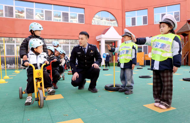 民警組織小朋友開展出行安全演練。通訊員 王力 攝