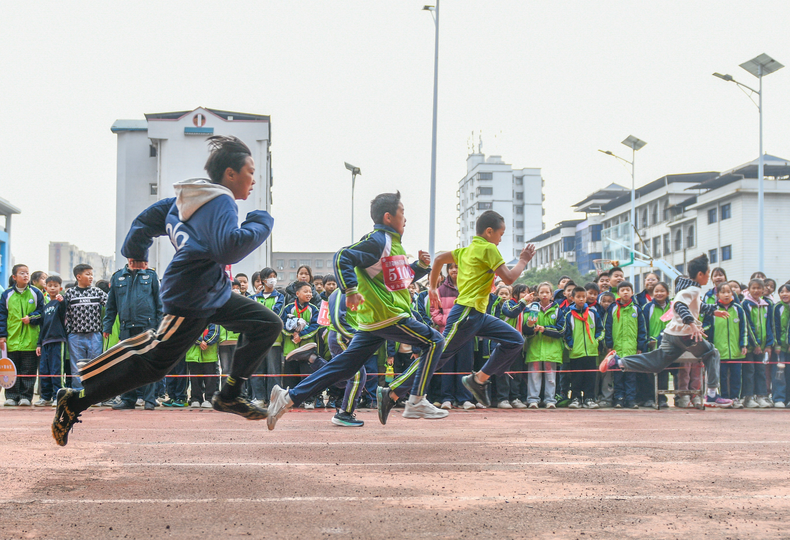 12月4日,湖南省永州市道縣第四小學(xué)舉行田徑運(yùn)動(dòng)會(huì),學(xué)生們?cè)谫悎?chǎng)上奮勇爭(zhēng)先,盡情享受體育運(yùn)動(dòng)帶來(lái)的快樂。中國(guó)教育報(bào)-中國(guó)教育新聞網(wǎng)通訊員 蔣克青 陳敏敏 攝