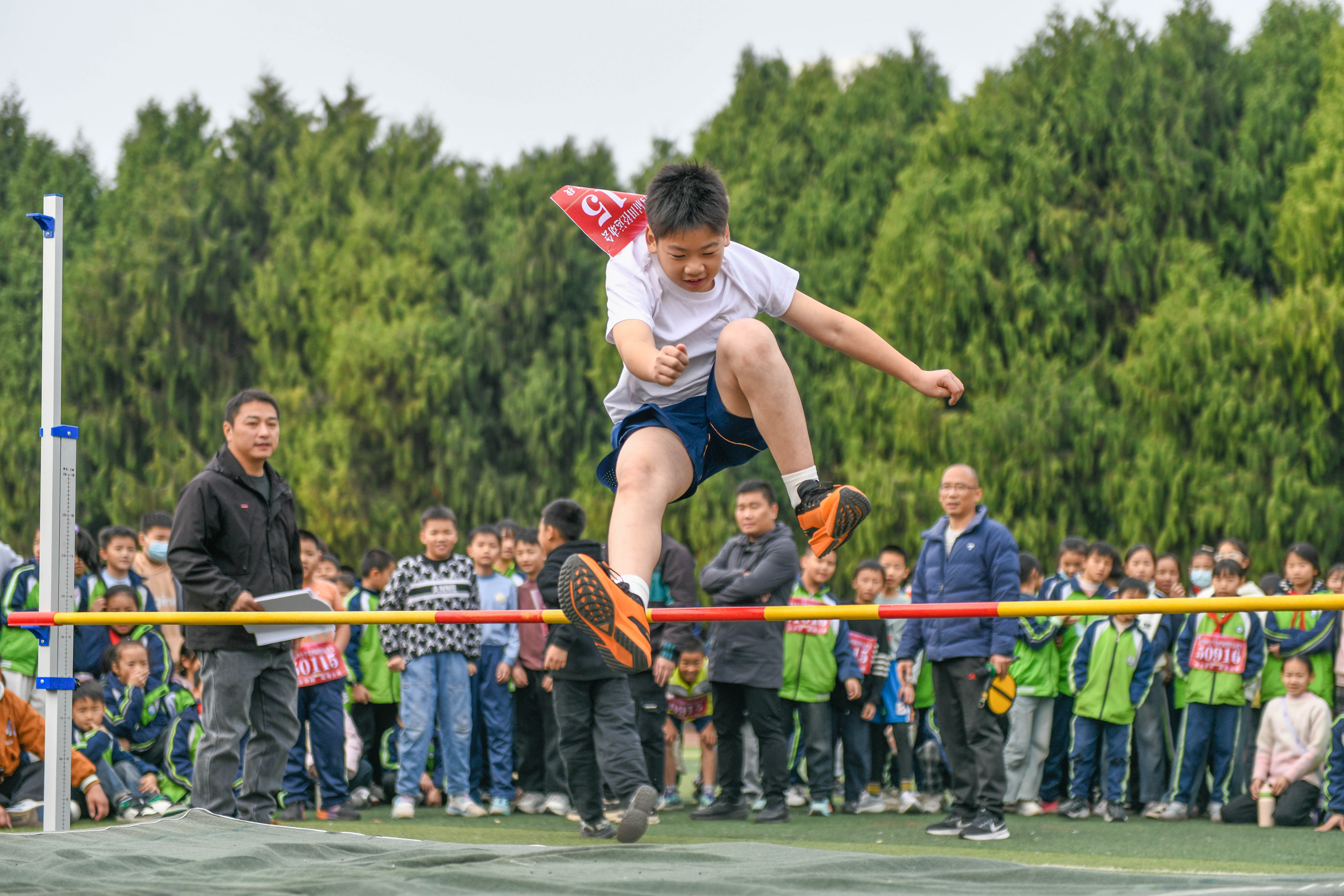 湖南省永州市道縣第四小學(xué)學(xué)生在參加跳高比賽。 通訊員 蔣克青 陳敏敏 攝