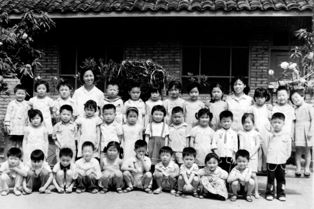 伊莎白的母親饒珍芳女士和弟維幼兒園(今成都市第十一幼兒園)的孩子們,右邊第一位是饒珍芳女士,她的左下角是伊莎白女士(伊莎白兒子Carl Crook 供圖)