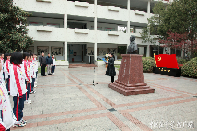 師生在吳亞魯烈士塑像前舉行紀念儀式 時道波攝(學校供圖)