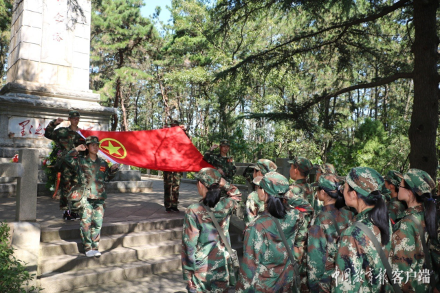 天福山中學(xué)黨支部組織學(xué)生團(tuán)員到天福山起義紀(jì)念碑前重溫入團(tuán)誓詞(學(xué)校供圖)