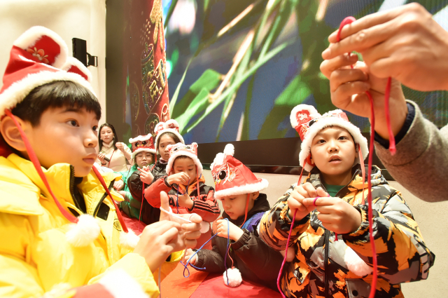 1月23日,小朋友在學(xué)習(xí)體驗揚州盤扣非遺技藝。莊文斌 攝