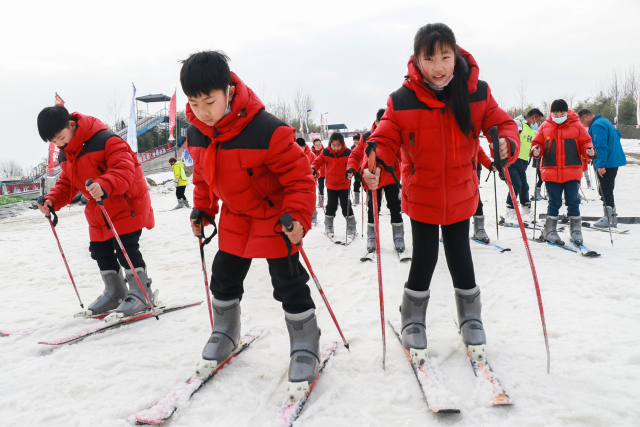 寒假期間,河北省邢臺市內(nèi)丘縣南賽中心小學(xué)開展“學(xué)滑雪 度寒假 迎冬奧”主題活動,學(xué)生們在老師指導(dǎo)下學(xué)習(xí)滑雪技巧,體驗滑雪項目,感受冰雪運動魅力,迎接北京冬奧會。