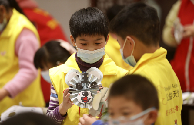 1月25日,孩子們正在制作虎年主題手工作品。李科 攝