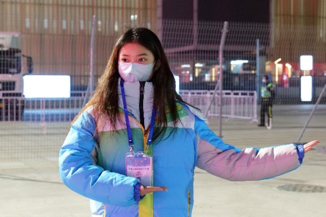 圖為支隊長高藝寧在冬奧志愿服務工作中。