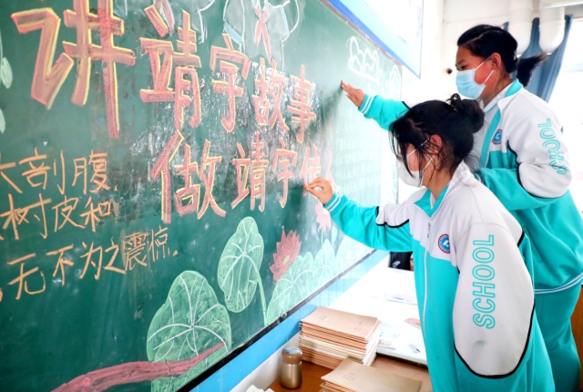 在驛城區各個學校,學生們通過開展“祭英烈、感黨恩、擔使命”主題隊會、網上祭英烈、演講比賽、手抄報、黑板報、書法、繪畫、剪紙等各種形式,追思民族英雄楊靖宇將軍,向所有的革命先烈致敬。