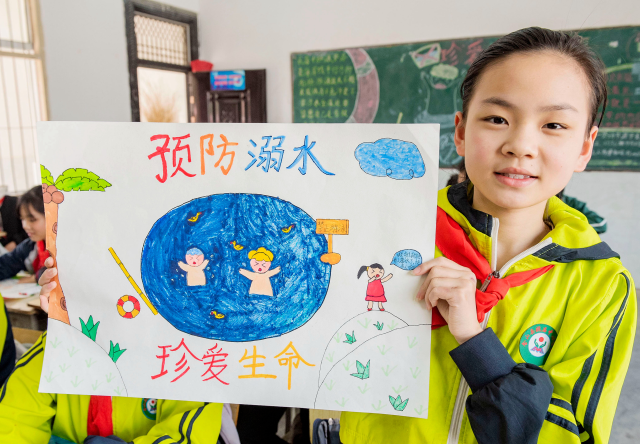 5月13日,安徽省馬鞍山市含山縣姚廟中心學(xué)校的學(xué)生在展示自己繪制的“防溺水”宣傳畫。連日來,姚廟中心學(xué)校開展以“珍愛生命 預(yù)防溺水”的主題系列活動(dòng),通過致家長(zhǎng)一封信、國(guó)旗下講話、宣傳欄、繪畫、電子屏、主題班會(huì)、微信群、家庭走訪等多種形式,抓實(shí)抓細(xì)防溺水安全教育工作,確保把防溺水安全工作落實(shí)到每一名學(xué)生,切實(shí)做到“防溺水知識(shí)人人皆知,防溺水意識(shí)深入人心”,織密織牢學(xué)生防溺水安全網(wǎng)。 歐宗濤 攝