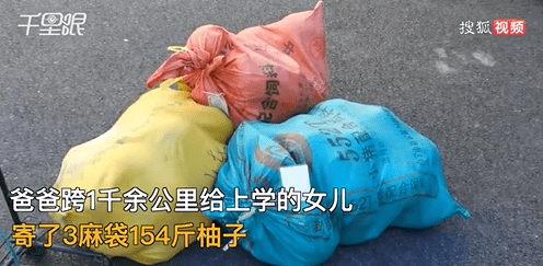 在山東濟南,一父親隔1千余公里給上學的女兒寄了3麻袋154斤柚子。劉同學表示,自己是廣西人在山東讀書,家鄉有很多水果特產,爸爸覺得應該給同學、老師分些特產,每年都會給自己郵一些,結果這次沒控制好量……