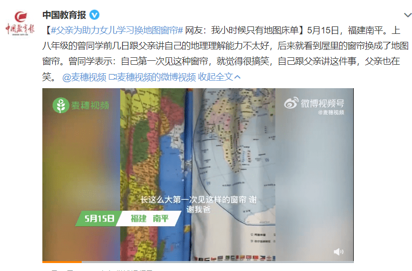 父親為助力女兒學習換地圖窗簾!網友:我小時候只有地圖床單