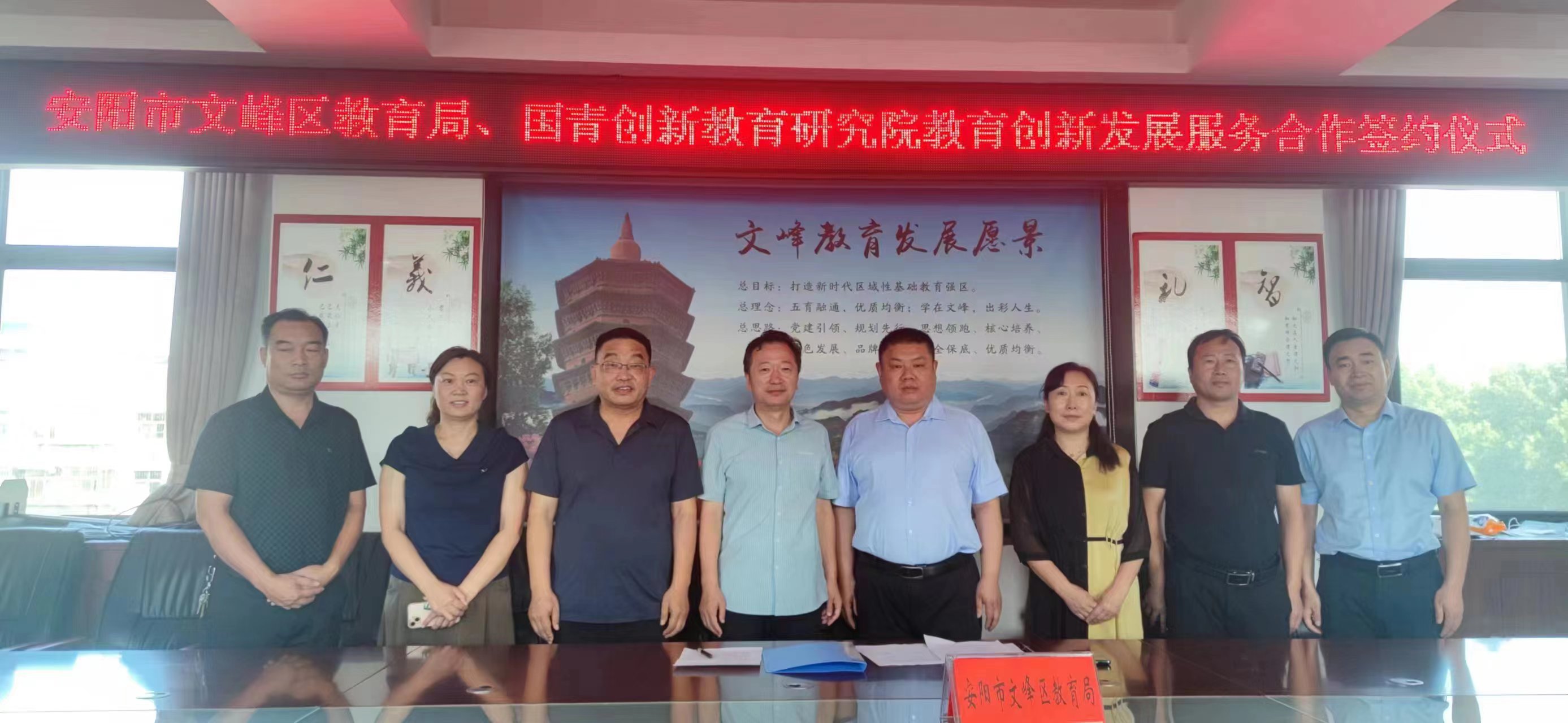 河南省安陽市文峰區教育局與國青創新教育研究院簽署合作協議。安陽市文峰區教育局供圖