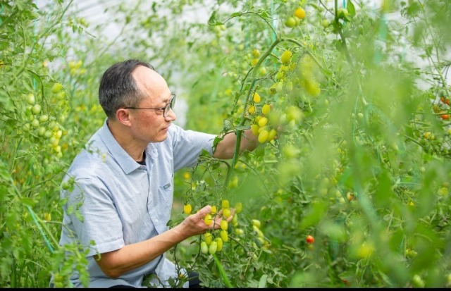 瞿鴻遠(yuǎn)在實(shí)驗(yàn)大棚潛心鉆研西紅柿種植技術(shù)