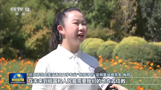 北京師范大學(xué)漢語(yǔ)言文學(xué)專業(yè)“優(yōu)師計(jì)劃”定向就業(yè)師范生 肖珂:總書記勉勵(lì)我們?cè)鲩L(zhǎng)傳道授業(yè)解惑本領(lǐng),在未來(lái)到祖國(guó)和人民最需要我們的地方去任教。我定不負(fù)囑托,努力學(xué)習(xí),在畢業(yè)后回到我的家鄉(xiāng)。