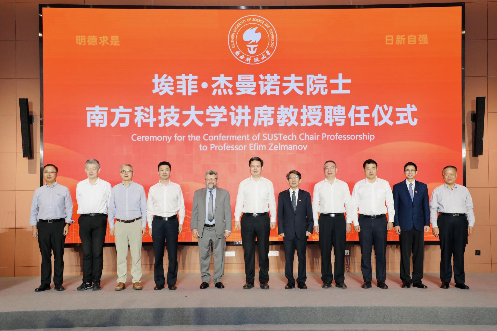 中國教育新聞網訊(記者 焦小新)9月14日,世界著名數學大師埃菲·杰曼諾夫(Efim Zelmanov)院士南方科技大學講席教授聘任儀式在南方科技大學會議中心舉行。全國人大常務委員會副委員長、中國科學院院士丁仲禮,中國科協黨組書記、副主席、中國工程院院士張玉卓,教育部副部長、中國工程院院士鐘登華,廣東省委常委、副省長、中國科學院院士王曦,深圳市委副書記、市長覃偉中,中國數學會理事長、中國科學院院士田剛,國家自然科學基金委數物部主任、中國科學院院士江松,國際工業與應用數學聯合會主席、中國科學院院士袁亞湘,南方科技大學校長、中國科學院院士薛其坤等分別在線上線下出席聘任儀式。