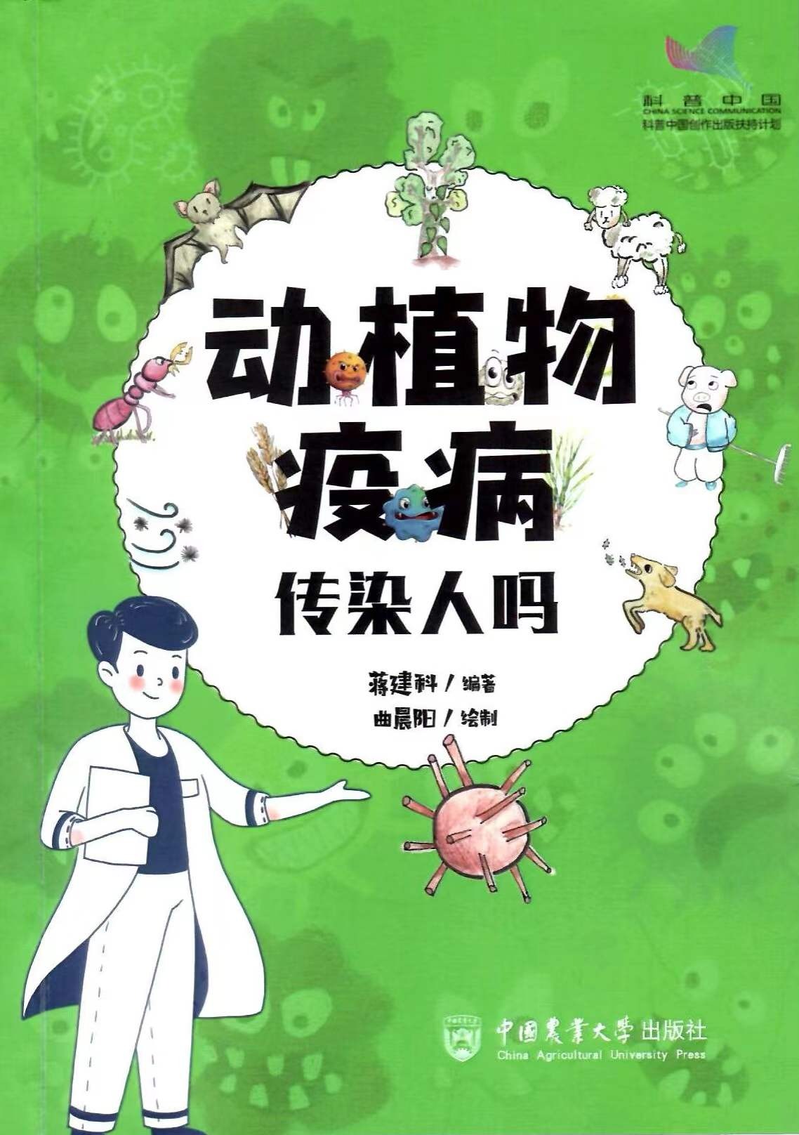 科普圖書《動植物疫病傳染人嗎》由人民日報社高級編輯蔣建科編著,中國農業大學附屬小學學生曲晨陽繪制插圖。該書以常見動植物疫病為主線,幫助公眾科學認識各種病源,以及日常生活中的注意事項和防護方法。本書獲得“科普中國創作出版扶持計劃”項目的支持。