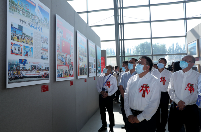 中國行業報協會會長張超文與60家行業媒體領導參觀圖片展。董芳忠 攝