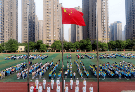 由少年國旗班成員升起的國旗在校園里迎風飄揚。通訊員 汪榱 攝