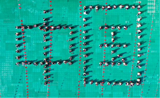 小朋友們和老師們擺出“中國”字樣。通訊員 胡攀學 攝