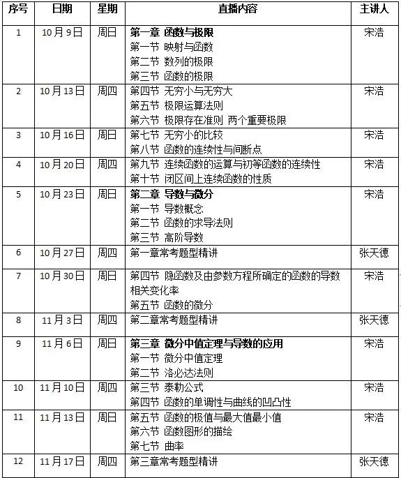 高等數學(上)習題課第二講的直播時間為10月13日19:00~21:00,課程設置包括函數與極限、無窮小與無窮大、極限運算法則、極限存在準則和兩個重要極限。讓我們繼續趁熱打鐵,一起成為解題高手!