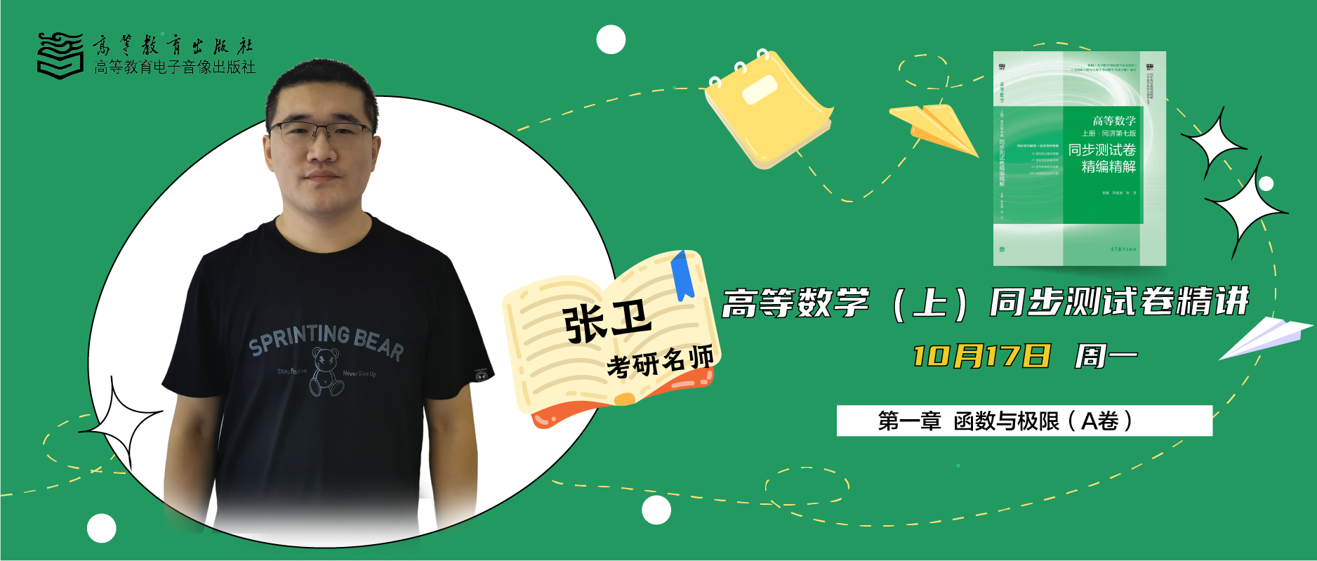 “高等數學伴學活動”系列二——高等數學(上)同步試卷精講將于10月17日19:00—21:00正式上線,課程內容將圍繞《高等數學上冊 同濟第7版 同步測試卷精編精解》同步測試卷中的試題進行精解。溫馨提示:請自備教材。
