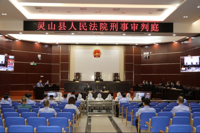 廣西靈山縣人民法院一審判決“4·02”案現場。靈山縣人民法院供圖