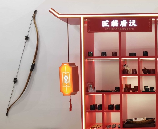 第五屆中國國際進口博覽會陜西展區展示的部分弓箭、漆器等非遺產品