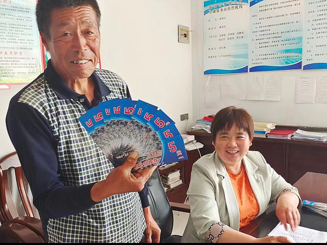 圍場縣銀里村村民劉俊才開心地展示剛剛領到的“文明積分”積分券