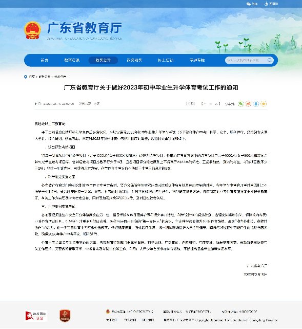 廣東省教育廳關于做好2023年初中畢業生升學體育考試工作的通知