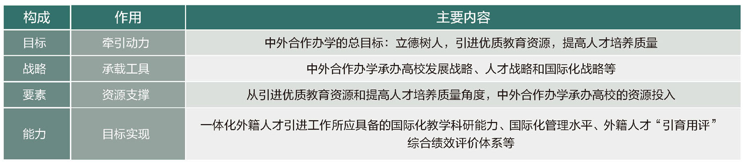 二、中外合作辦學(xué)一體化外籍人才引進(jìn)工作體系和能力建設(shè)的內(nèi)涵